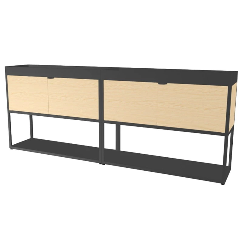 L’ensemble d’étagères New Order à portes coulissantes comprend les éléments suivants dans une largeur de 100 cm : 2 x étagère basse, 2 x étagère intermédiaire, 2 x plateau supérieur, 2 x panneaux en bois (2 côtés + 1 fond), 2 x porte coulissante en bois, 2 x poignée pour porte en bois, 2 x base à profil double, 4 x base à profil simple.